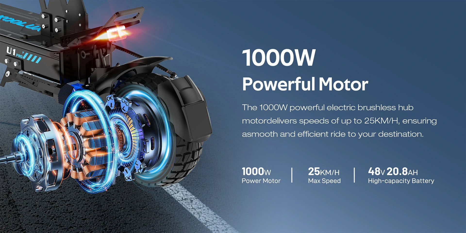 500W*2 Dual Motor | 48V 20.8Ah Battery | 25km/h Speed | 60-7km Range