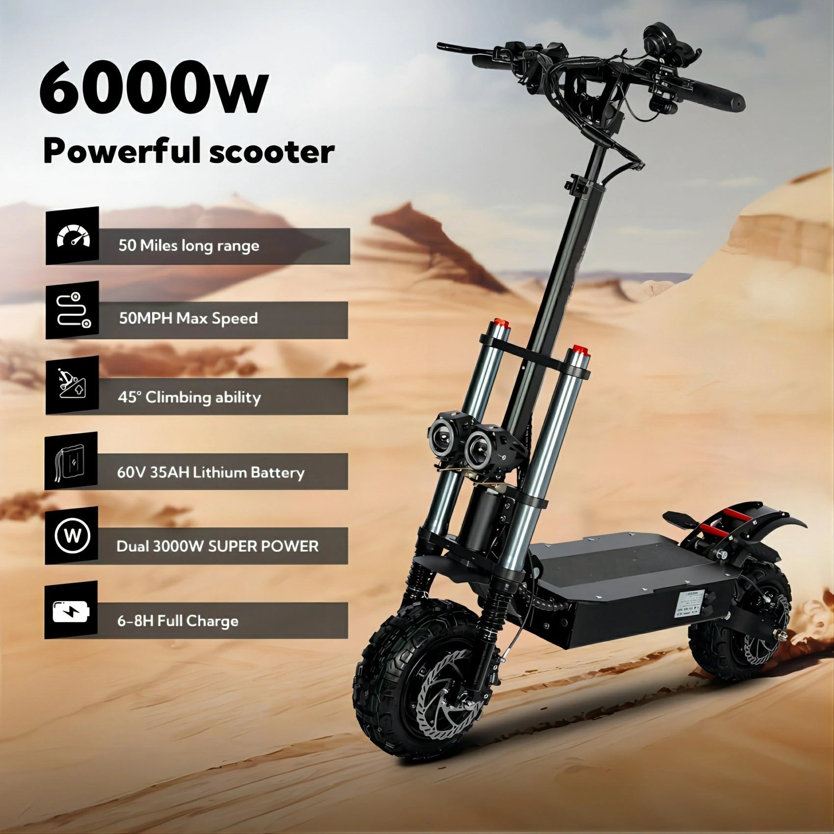 3000W*2 Dual Motor | 60V 40Ah Battery | 80-85km Speed | 60-120km Range